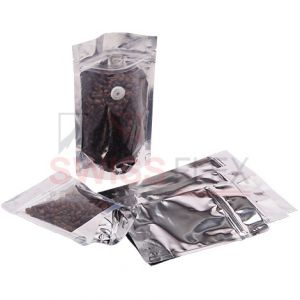 4. Clear / Shiny Silver Stand Up Pouch with Zipper & Valve for Coffee Packaging